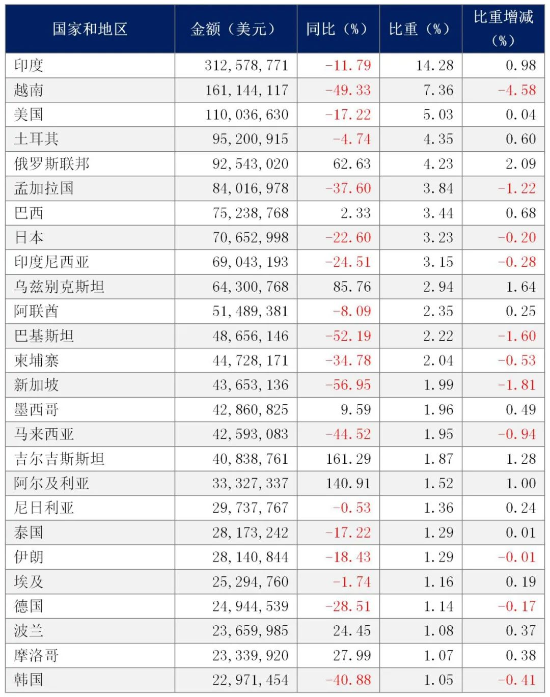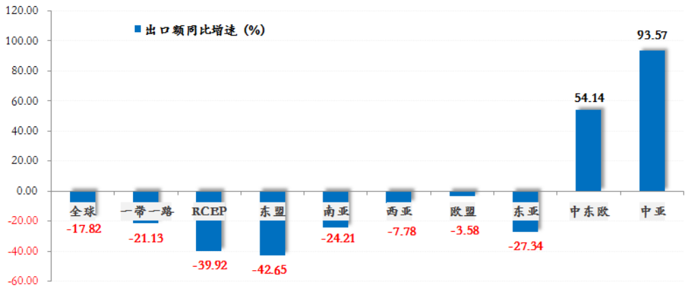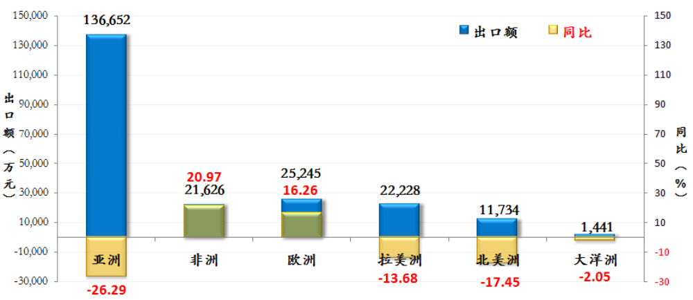 জানুয়ারী থেকে ২০২৩ সালের সেপ্টেম্বর পর্যন্ত, এশিয়া, লাতিন আমেরিকা, উত্তর আমেরিকা এবং ওশেনিয়ায় চীনা রফতানি এক বছরের পর বছর হ্রাস দেখিয়েছিল, তবে আফ্রিকা এবং ইউরোপে রফতানি এক বছর ধরে বছরের বৃদ্ধির প্রবণতা দেখিয়েছিল ।